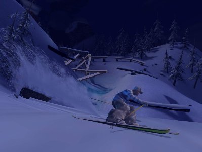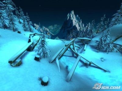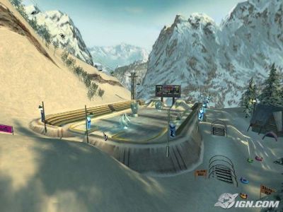 A fast adrenaline filled track from the start, the huge drop off sets you up for a twisting struggle through the resort town of Powder Keg (If you believe the road signs). Jumping over frozen rivers, roads, trees and even the local radio station you have to be on top form to win here.