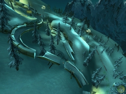 This track has a multitude of paths including the ski wreaking choice of sliding your way down the twisty alpine road. With on and off piste it is also possible to find some nice powder and every ones favourite, an icy banked turn. This track also features one of the best start sequences in the ski-able area, an en mass double grind.